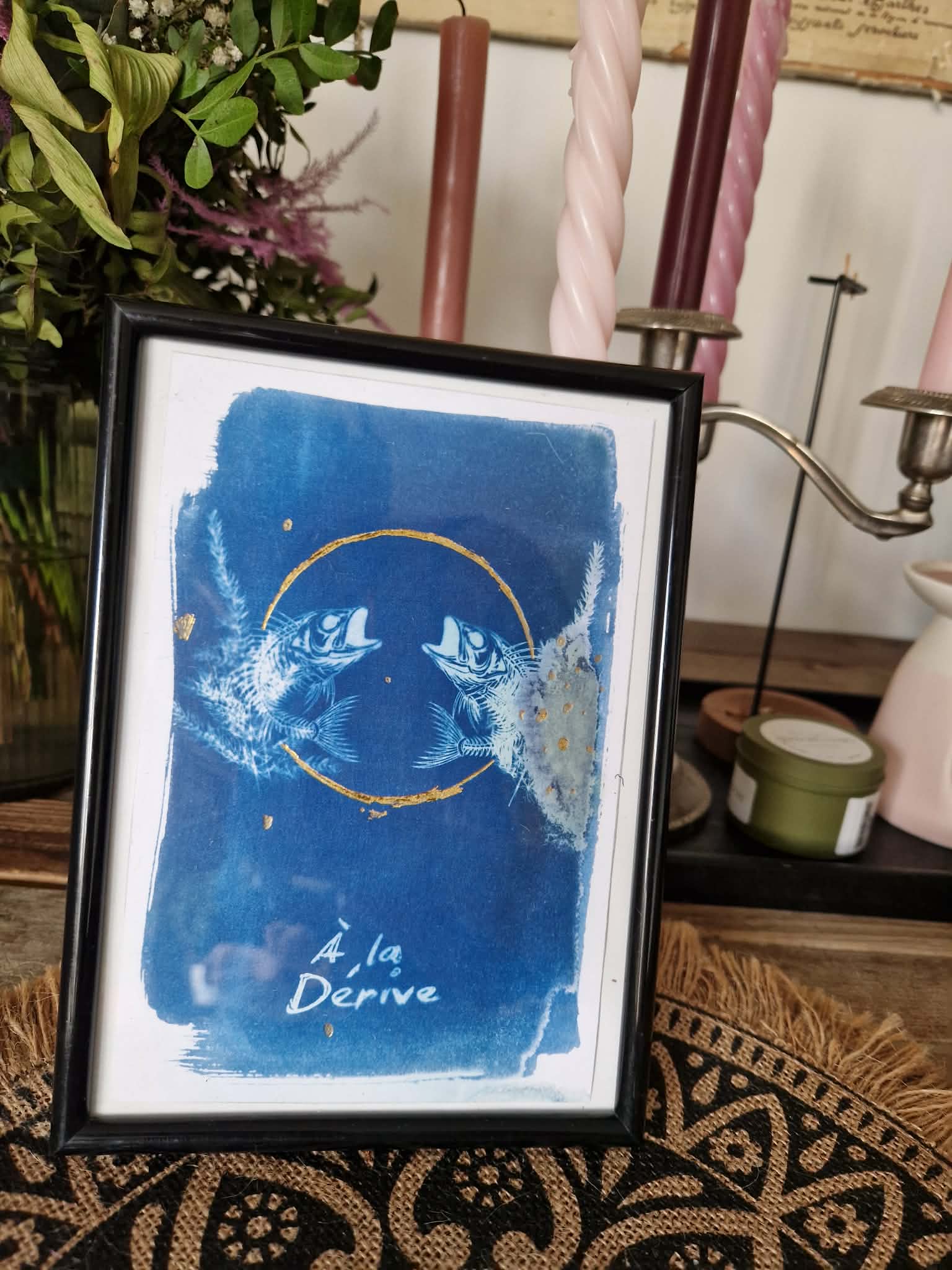 Œuvre originale réalisée en cyanotype, encadrée sous verre.