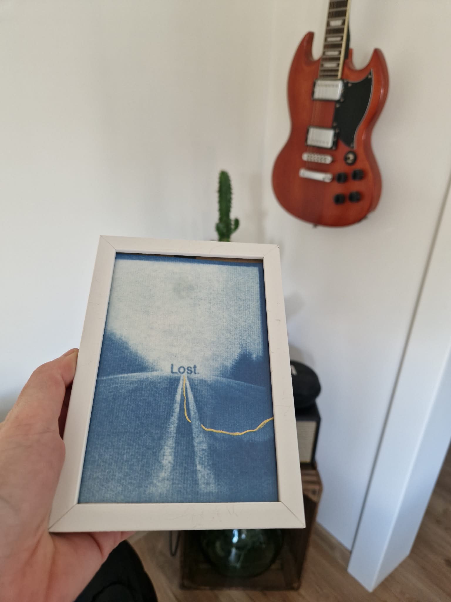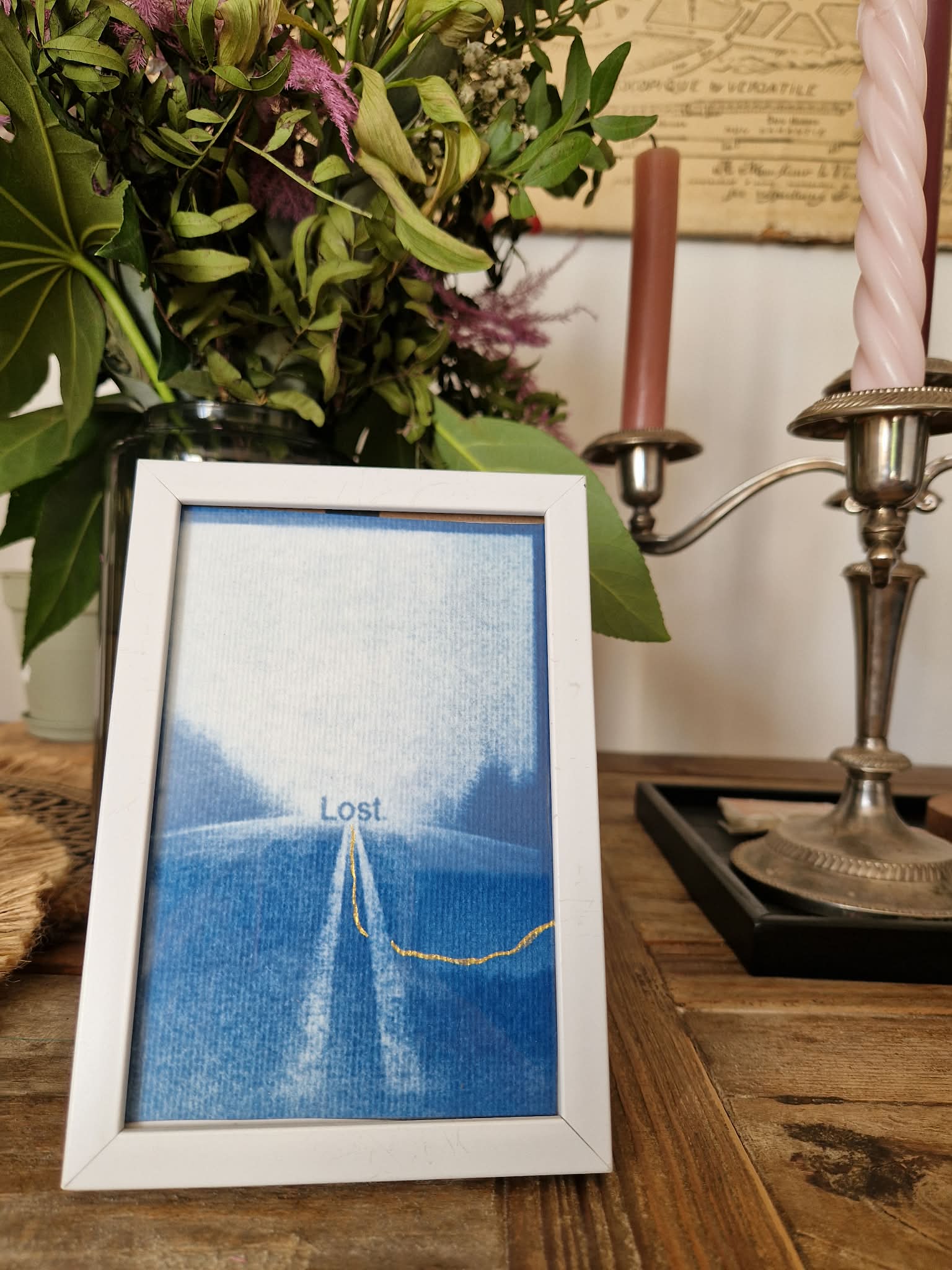 Œuvre originale réalisée en cyanotype, encadrée sous verre.